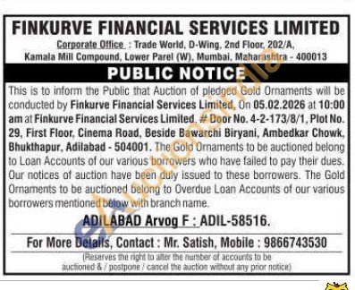FINKURVE FINANCIAL SERVICES LIMITED Gold Auctions Auction in Adilabad
