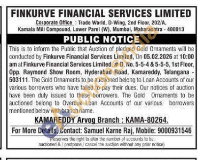 FINKURVE FINANCIAL SERVICES LIMITED Gold Auctions Auction in Kamareddy
