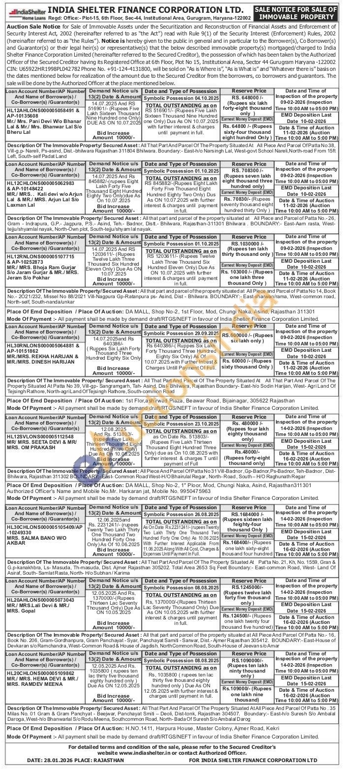 Description Of The Immovable Property/Secured Asset: All That Part And Parcel Of The Property Situated At All Piece And Parcel Of Patta No 38, Vill-g.p- Nareli, Ps-asind, Dist.-bhilwara Rajasthan 311804 Bhilwara. Boundary:- East-h/o Narsingh Lal, West-govt School Nareli, North-road From 15ft Left. South-self Padal Land