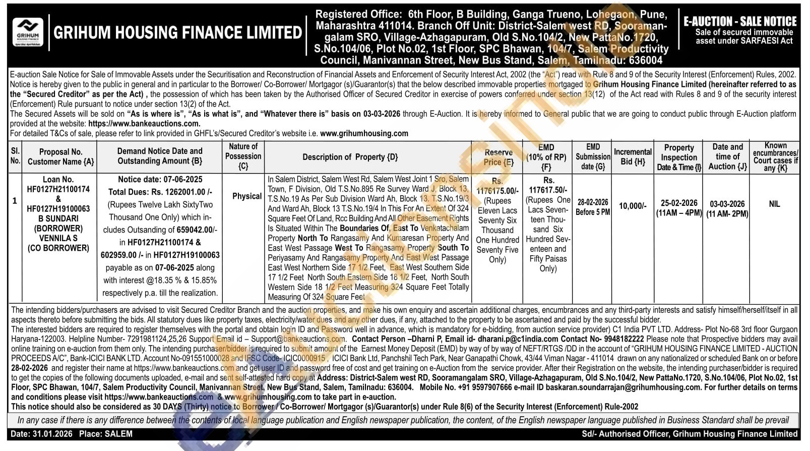 And Ward Ah, Block 13 T.S.No. 19/4 In This For An Extent Of 324 Square Feet Of Land, Roc Building And All Other Easement Rights Is Situated Within The Boundaries Of, East To Venkatachalam Property North To Rangasamy And Kumaresan Property And East West Passage West To Rangasamy Property South To Periyasamy And Rangasamy Property And East West Passage East West Northern Side 17 1/2 Feet, East West Southern Side 17 1/2 Feet North South Eastern Side 18 1/2 Feet, North South Western Side 18 1/2 Feet Measuring 324 Square Feet Totally Measuring Of 324 Square Feet In Salem District, Salem West Rd, Salem West Joint 1 Sro, Salem Town, F Division, Old T.S.No.895 Re Survey Ward J. Block 13. T.S.No.19 As Per Sub Division Ward Ah, Block 13. T.S.No. 19/3
