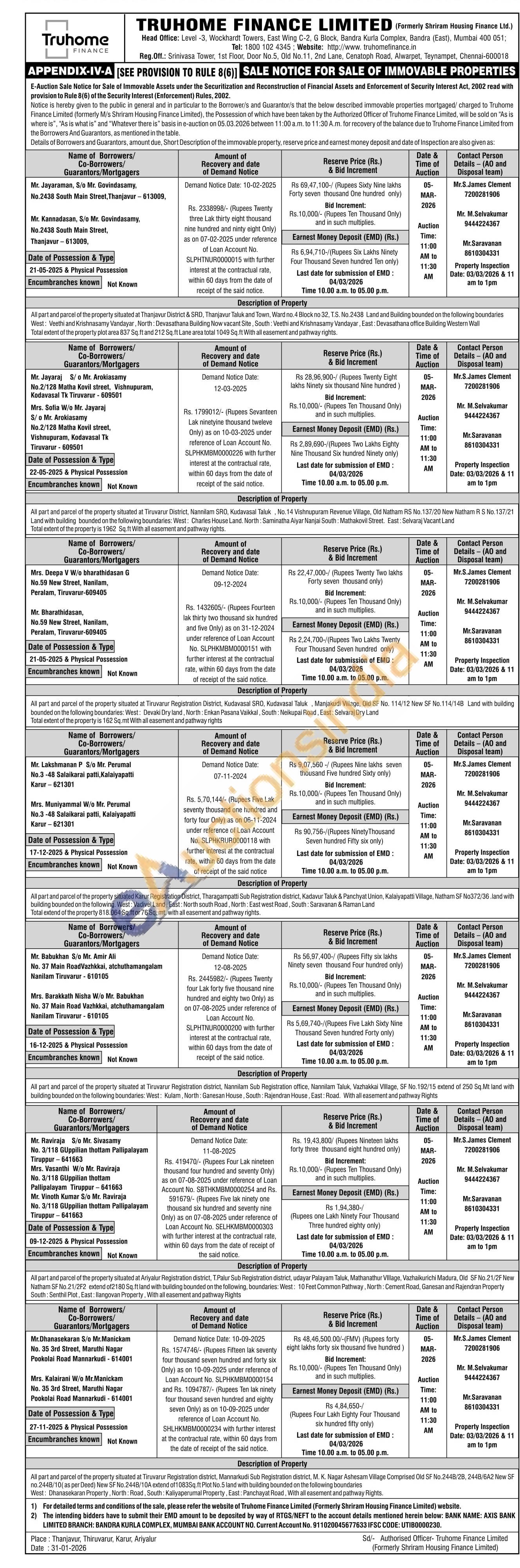 All part and parcel of the property situated at Tiruvarur Registration district, Mannarkudi Sub Registration district, M. K. Nagar Ashesam Village Comprised Old SF No.2448/28, 2448/6A2 New SF no. 2448/10) as per Deed) New SFNo.2448/10A nxdend of 10835 ft Plot No. 5 land with building bounded on t liding bounded on the following boundaries West. Dhanasekaran Property, North: Road, South Kalysperumal Property, East: Panchayat Road, With all caserment and pathway Rights.