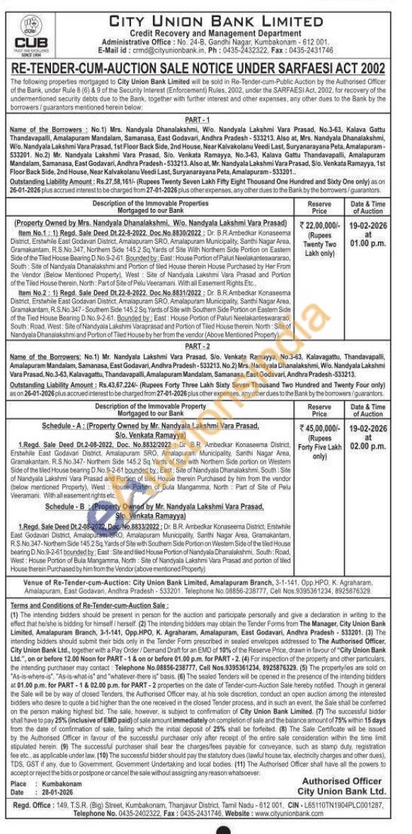 1.Regd. Sale Deed Dt.2-08-2022. Doc. No.3832-2022: Dr B.R. Ambedkar Konasema District. Erstwhile East Godavar District. Ansapuram SRO, Amalapuram Municipality Santhi Fagar Area, Gramakantan RS No. 347-Northem Side 1452 Sq Yards of Site with Northem Side portion on Wiestem Side of the tied House tearing D.No.8-2-61 bounded by East: Site of Nandyalla Dhamalakshmi, South Ste of Nandyala Lakshmi Vara Prasad and Portion of tiled House therein Purchased by him fom the vendor below mentioned Property), West House Porton of Bula Mangamma, North Part of Site of Peu Veerarnani With all wasement rights etc