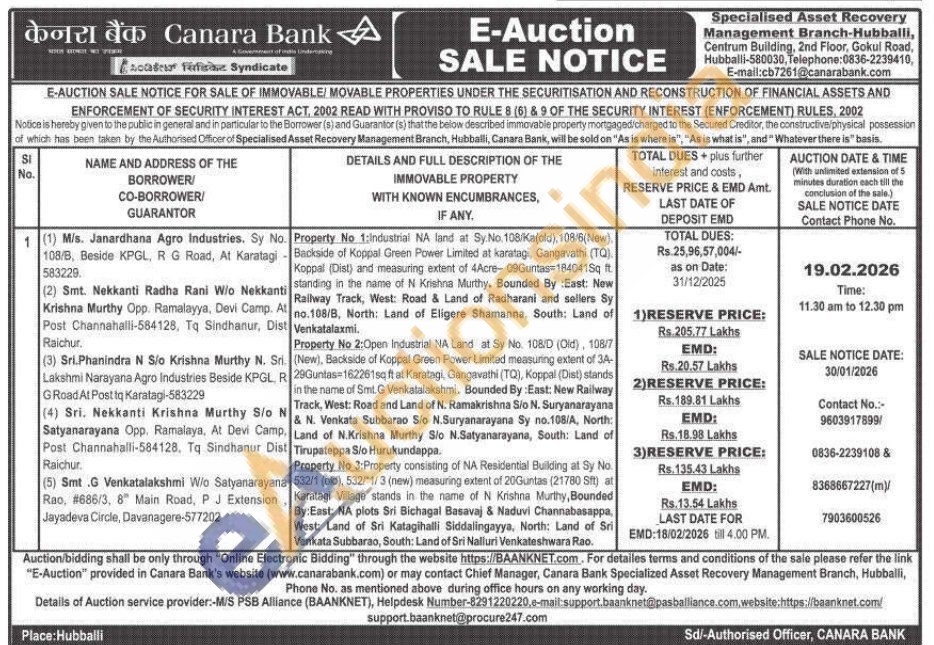 Property No 2:Open Industrial NA Land at Sy No. 108/D (Old), 108/7 (New), Backside of Koppal Green Power Limited measuring extent of 3A-29Guntas 162261sq ft at Karatagi, Gangavathi (TQ), Koppal (Dist) stands in the name of Smt. G Venkatalakshmi, Bounded By: East: New Railway Track, West: Road and Land of N. Ramakrishna Sio N. Suryanarayana & N. Venkata Subbarao Sio N.Suryanarayana Sy no.108/A, North: Land of N.Krishna Murthy S/o N.Satyanarayana, South: Land of Tirupateppa S/o Hurukundappa