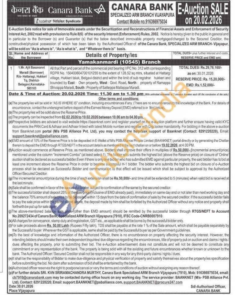 All that Part and parcel of the commercial plot bearing VPC No. 312 with corresponding RDPR No. 150400604700101255 to the extent of 128.52 sq mtrs, situated at Hattargi village, Hukkeri taluk, Belgavi district and within the limit of sub registrar hukkeri and bounded by East: Own property, West: Govt. Road, North property of Ramappa Shivappa Maradi, South Property of Satteppa Mallappa Maradi.
