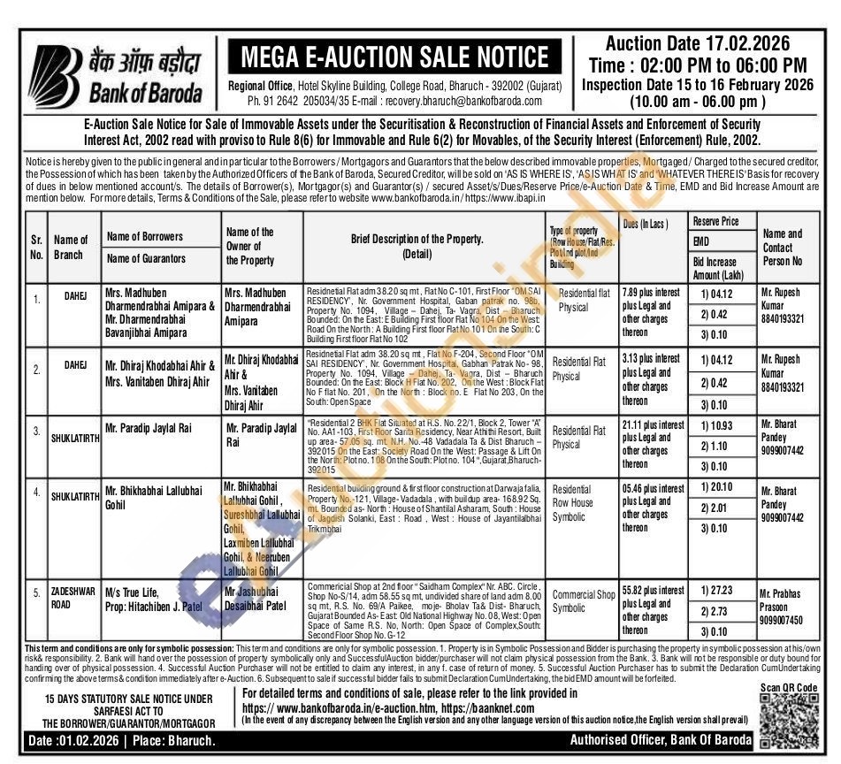 Residnetial Flat adm 38.20 sq mt, Flat No F-204, Second Floor "OM SAI RESIDENCY, Nr. Government Hospital, Gabhan Patrak No-98, Property No. 1094, Village Dahej. Ta Vagra, Dist Bharuch Bounded: On the East: Block H Flat No. 202, On the West: Block Flat No F flat No. 201, On the North Block no. E Flat No 203, On the South: Open Space