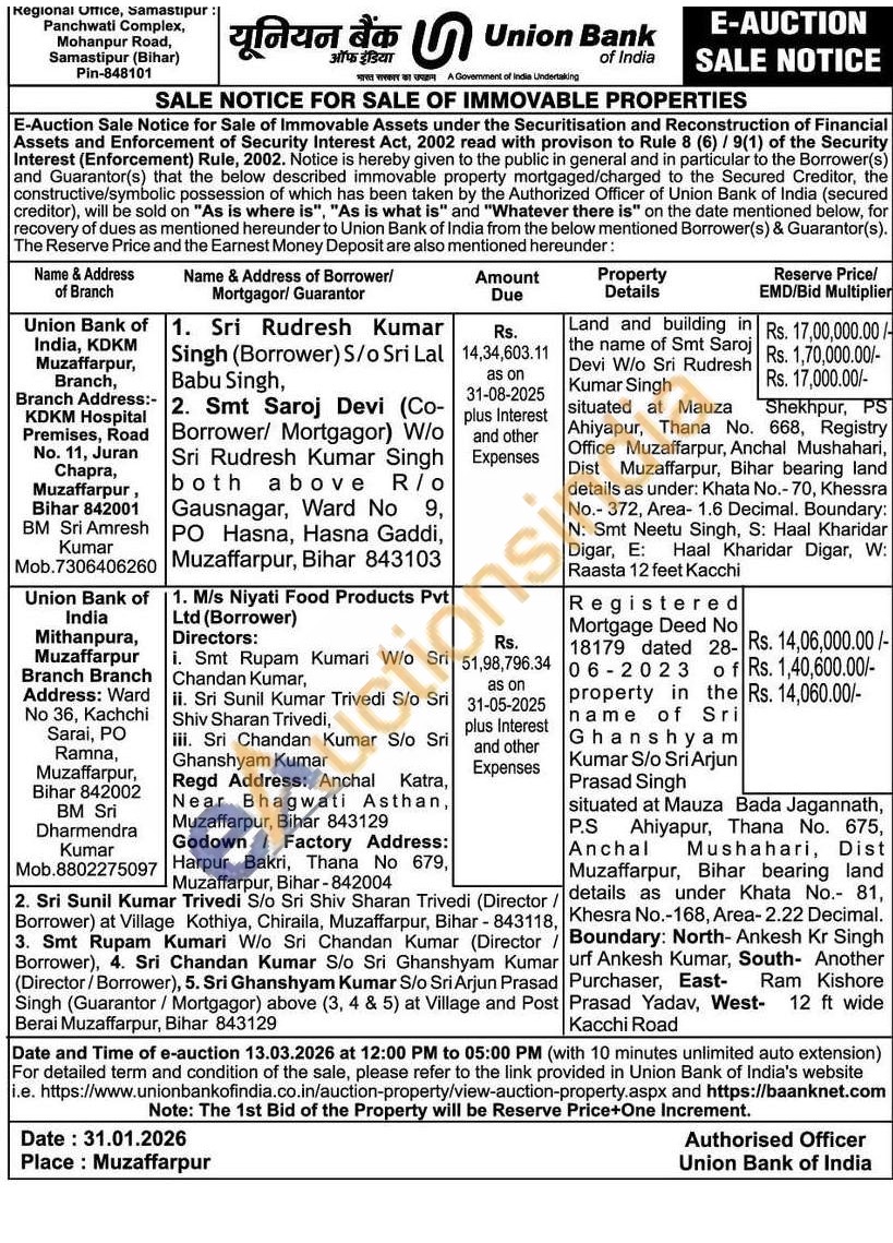 Registered Mortgage Deed No 18179 dated 28-06-2023 of property in the name of Sri Ghanshyam Kumar S/o Sri Arjun Prasad Singh situated at Mauza Bada Jagannath, P.S Ahiyapur, Thana No. 675, Anchal Mushahari, Dist Muzaffarpur, Bihar bearing land details as under Khata No.- 81, Khesra No.-168, Area-2.22 Decimal. Boundary: North-Ankesh Kr Singh urf Ankesh Kumar, South- Another Purchaser, East- Ram Kishore Prasad Yadav, West 12 ft wide Kacchi Road