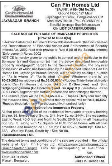 All that piece and parcel of the residential immovable property bearing Site no. 89, formed out of Sy. no. 244. New Sy. no. 244/4, Site measuring East to West: 40-0 feet and North to South: 20-0 feet, in all measuring 800 Sq., ft., along with 12 Square of RCC roofed house with all civic amenities and bounded on: East by: Site No-76, North by: Site No-88A, West by: Road, South by: Site No-90.