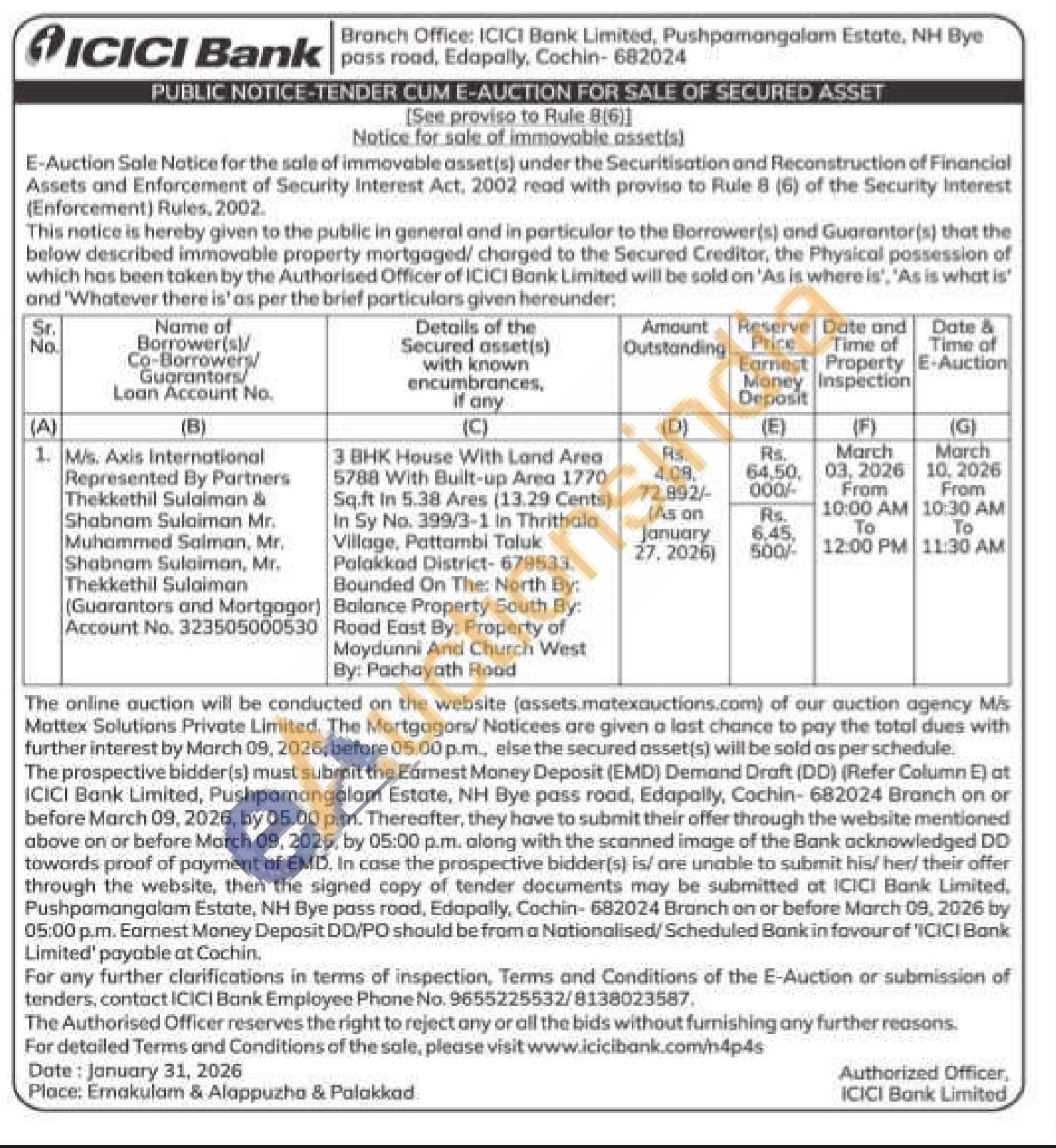 3 BHK House With Land Area 5788 With Built-up Area 1770 Sq.ft In 5.38 Ares (13.29 Cents) In Sy No. 399/3-1 In Thrithala Village, Pattambi Taluk Palakkad District-679533. Bounded On The: North By: Balance Property South By: Road East By: Property of Moydunni And Church West By: Pachayath Road
