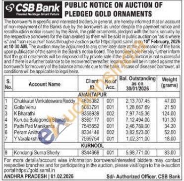 CSB Bank Gold Auctions Auction in Anantapur