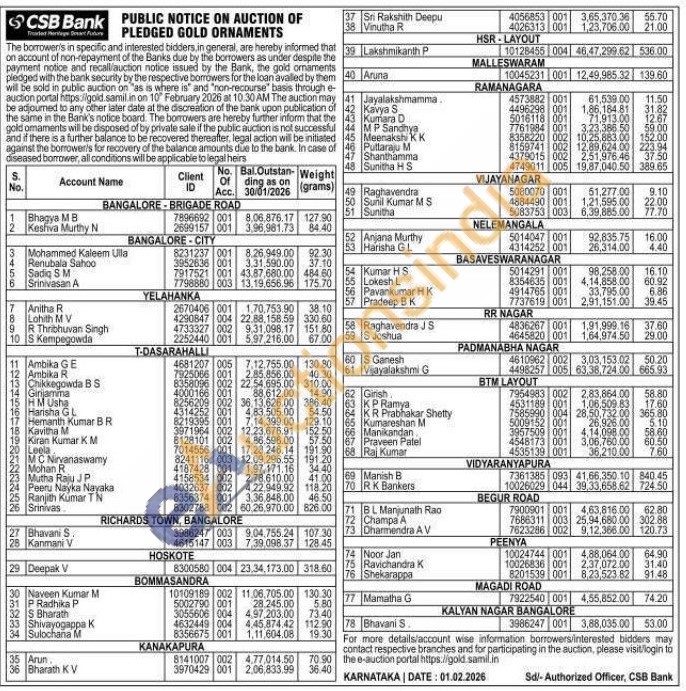 CSB Bank Gold Auctions Auction in Anantapur