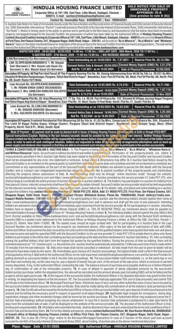 Description Of Property: All That Part And Parcel Of The Property Bearing Plot No. 88, Having Admeasuring Area 46.66 Sq Yds Le. 39.031 Sq Mira, Situated At Mohalla Ranjeetnagar, Pargana, Tehsil And District Hapur, Boundries: East: Part Of Plot No. 88, West: Part Of Plot No. 88, North: Plot No. 89, South: Rasta 16 Ft Wide.
