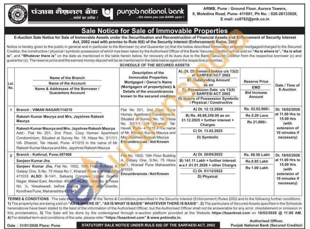 Flat No 201, 2nd Floor, Cozy Homes Apartment Condominium, Situated at Survey No. 19, Hissa No. 3/1/1/1, Vill- Dhanori, Tal-Haveli, Pune-411015 in the name of Mr. Rakesh Kumar Maurya and Mrs. Jayshree Rakesh Maurya Encumbrances: Not Known
