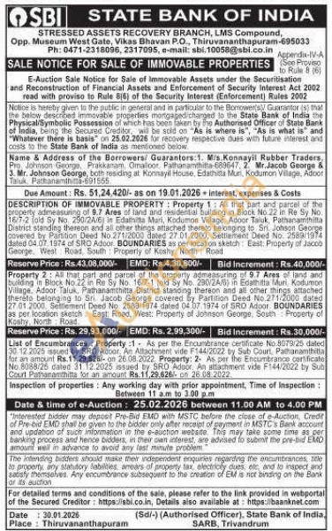 DESCRIPTION OF IMMOVABLE PROPERTY:Property 2: All that part and parcel of the property admeasuring of 9.7 Ares of land and building in Block No.22 in Re Sy No 16/7-1 jold Sy No. 290/24/5) in Edathitta Mun, Kodumon Village, Adoor Talus, Pathanamthitta District standing thereon and all other things attached thereto belonging to Sri. Jacob George covered by Partition by Partition Deed No.271/2000 dated 27.01.2000, Settlement Deed No. 2509/1974 dated 04.07.1974 of SRO Adoor BOUNDARIES as per location sketch East: Roed, West, Property of Johnson George, South Property of