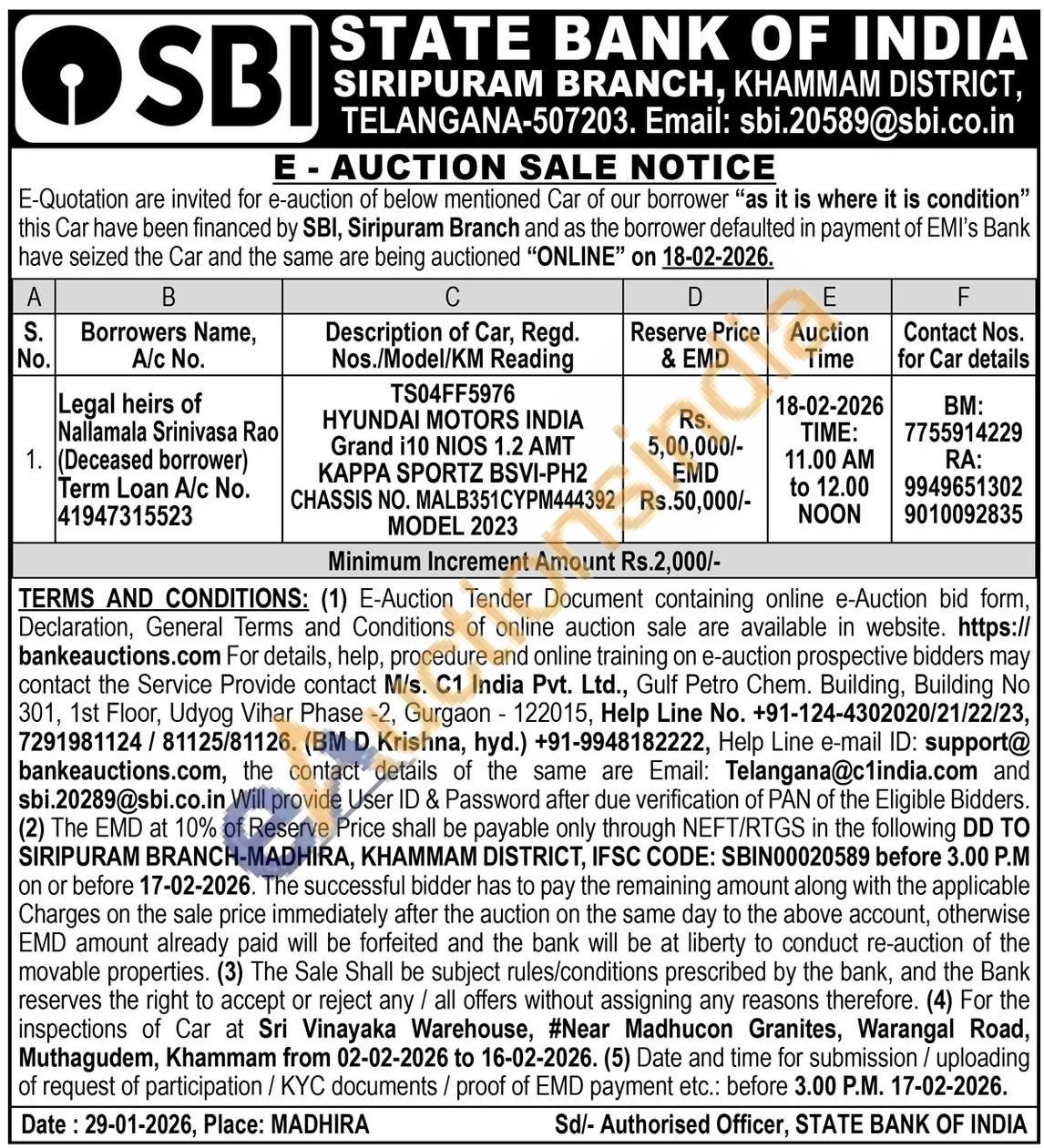 Description of Car, Regd. Nos./Model/KM Reading : TS04FF5976 HYUNDAI MOTORS INDIA Grand i10 NIOS 1.2 AMT KAPPA SPORTZ BSVI-PH2 CHASSIS NO. MALB351CYPM444392 MODEL 2023