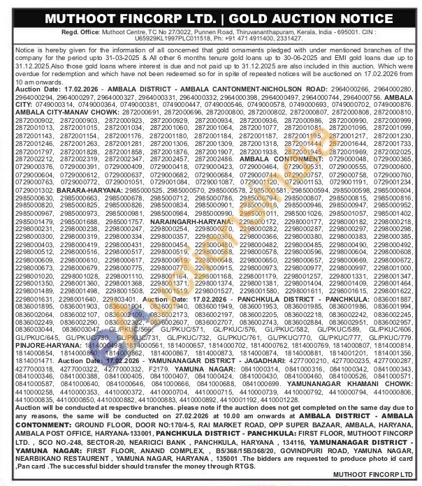 Muthoot Fincorp Ltd Gold Auctions Auction in Ambala