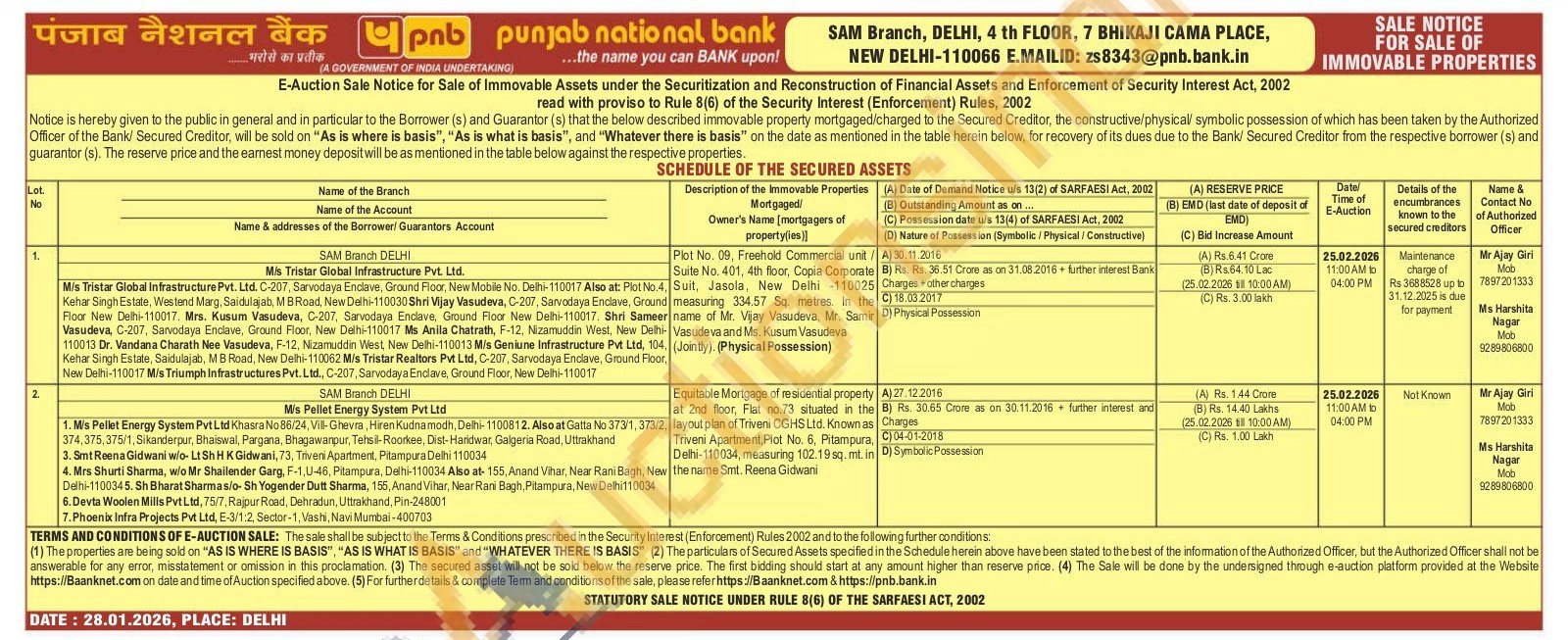 Equitable Mortgage of residential property at 2nd floor, Flat no.73 situated in the layout plan of Triveni CGHS Ltd. Known as Triveni Apartment, Plot No. 6, Pitampura, Delhi-110034, measuring 102.19 sq.mt. in the name Smt. Reena Gidwani