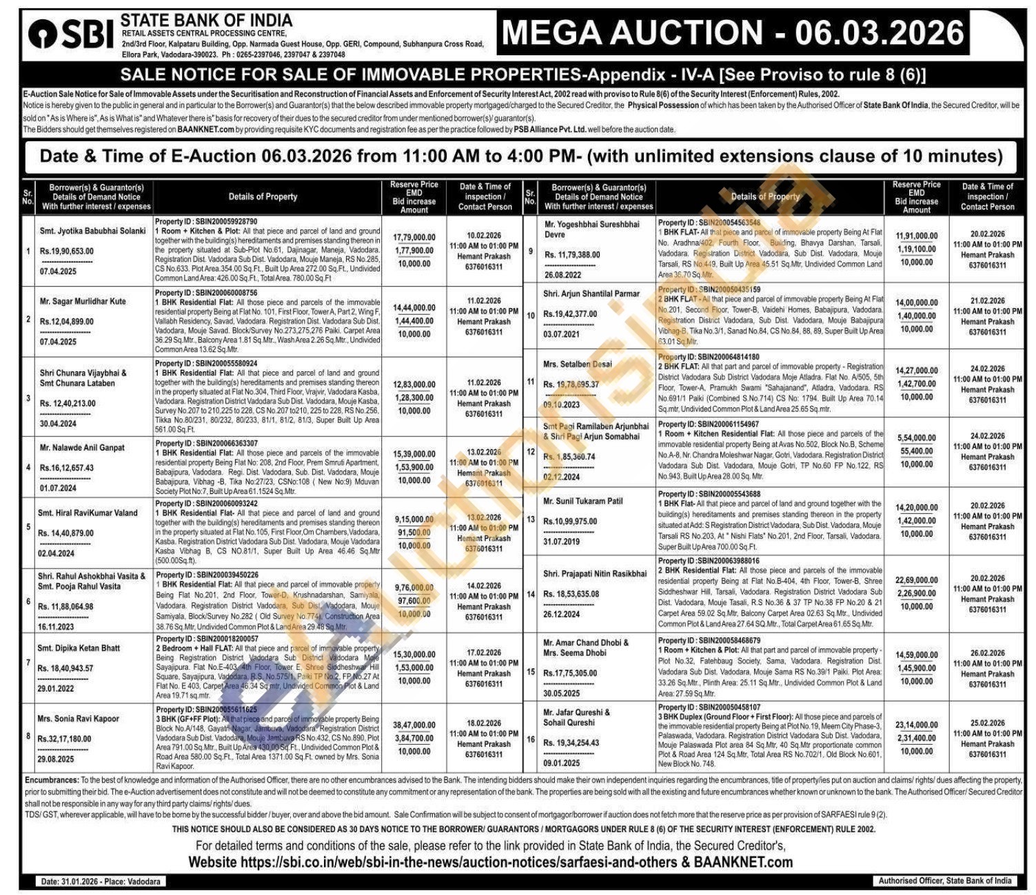2 BHK Residential Flat: Alt those plece and parcels of the immovable residential property Being at Flat No 8-404, 4th Floor, Tower-B. Shree Siddheshwar H, Tarsali, Vedodana. Registration District Vadodars Sub Dist. Vadodara, Mouje Tasali, R.3 No 36 & 37 TP No.38 FP No.20 & 21 Carpet Area 59.02 So Mr. Balcony Carpet Area 02.63 54 Mr. Undivided Common Plot & Land Area 27.648Q Mtr, Total Carpet Area 61.65 SM