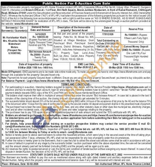 All that part and parcel of the property bearing Patta No. 36, Missal No. 805, Situated at Village Mandplya, Gram Panchayat Bholl, Panchayat Samili Suwana District Bhilwara, Rajasthan, 311001, India Area Admeasuring (In So. FL): Property Type Land, Ares. Built Up Area, Carpet Area Property Area: 1728.00, 700.00.595.00
