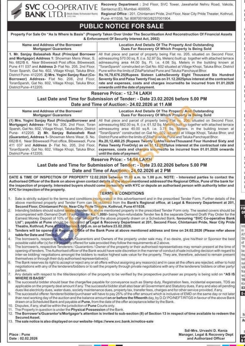 All that piece and parcel of property being Flat no. 205, situated on Second Floor, admeasuring 570.00 sq. ft. (i.a. 52.97 Sq. Meters) built up together with attached terrace admeasuring area 44.00 Sq. Ft. ie. 4.08 Sq. Meters in the building known at "ToranSparsh constructed on Gat No. 602 situated at Village Khopi, Taluka Bhor, District Pune within the limits of Zilla Parishad Pune and Taluka Panchayat Bhor