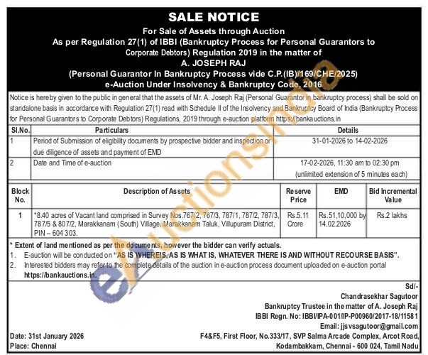 *8.40 acres of Vacant land comprised in Survey Nos.767/2, 767/3, 787/1, 787/2, 787/3, 787/5 & 807/2, Marakkanam (South) Village, Marakkanam Taluk, Villupuram District, PIN-604 303.