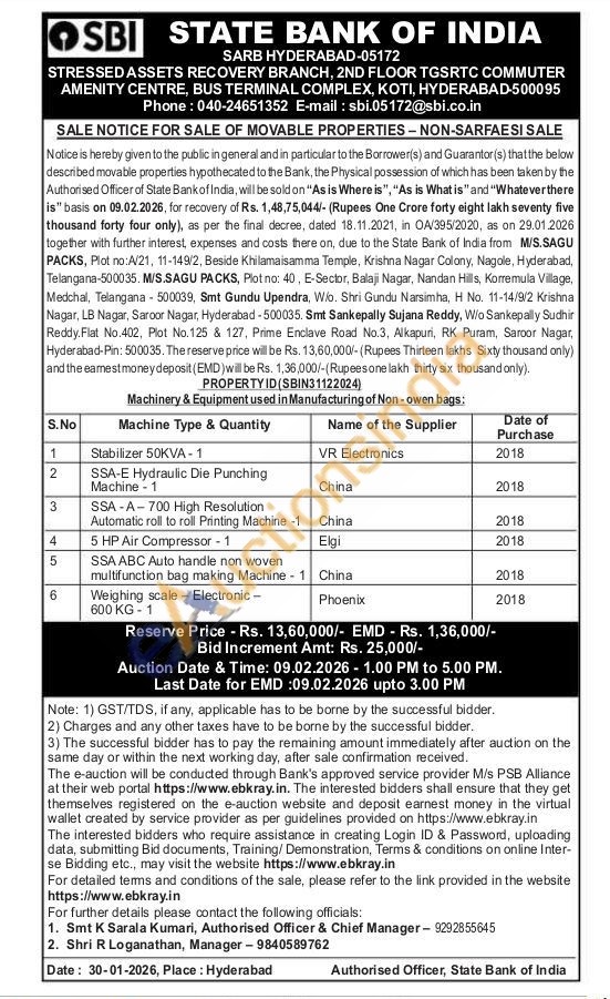 Machine Type & Quantity :SSA-E Hydraulic Die Punching Machine - 1 , Name of the Supplier China , Date of Purchase- 2018