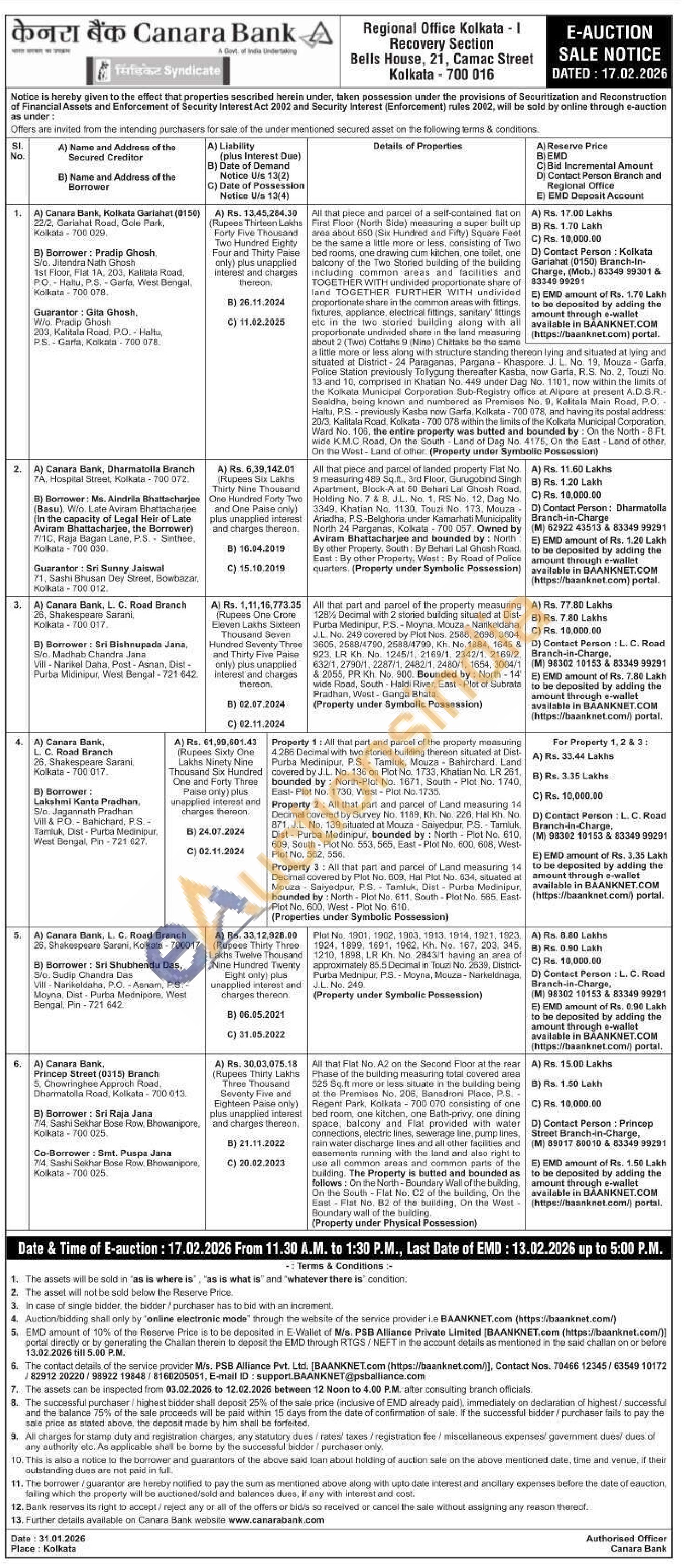 All that piece and parcel of landed property Flat No. 9 measuring 489 Sq.ft., 3rd Floor, Gurugobind Singh Apartment, Block-A at 50 Behari Lal Ghosh Road, Holding No. 7 & 8. J.L. No. 1, RS No. 12, Dag No. 3349, Khatian No. 1130, Touzi No. 173, Mouza Ariadha, P.S.-Belghoria under Kamarhati Municipality North 24 Parganas, Kolkata-700 057. Owned by Aviram Bhattacharjee and bounded by: North By other Property, South: By Behari Lal Ghosh Road, East: By other Property, West: By Road of Police quarters. (Property under Symbolic Possession
