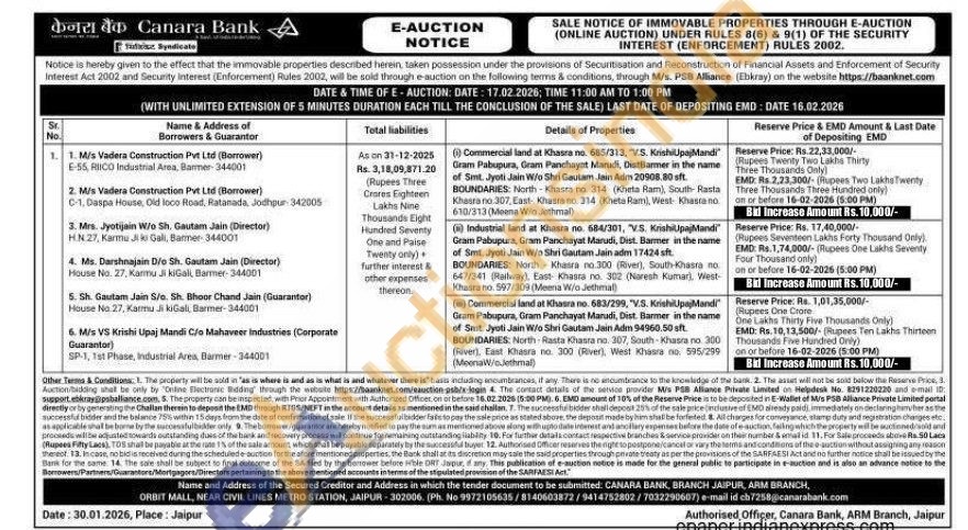 Industrial land at Khaara no. 684/301, "VS, KrishiUpajMandi Gram Pabupura, Gram Panchayat Marudi, Dist. Barmer in the name of Smt. Jyoti Jain W/o Shri Gautam Jain adm 17424 sft. BOUNDARIES: North Khasra no 300 (River), South Khasra no 647/341 (Railway), East Khasra no. 302 (Naresh Kumar), West-Khasra no. 597/309 (Meeria W/o Jethmal)