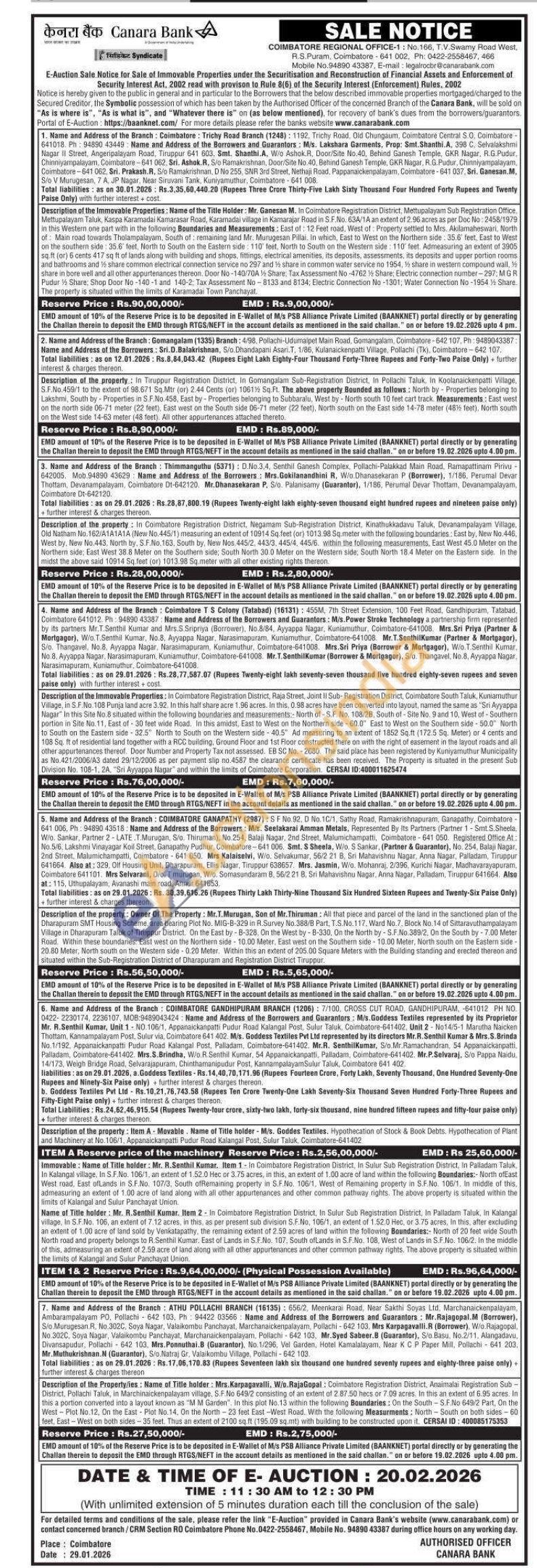 In Coimbatore Registration District, Negamam Sub-Registration District, Kinathukkadavu Taluk, Devanampalayam Village, Old Natham No. 162/A1A1A1A (New No.445/1) measuring an extent of 10914 Sq.feet (or) 1013.98 Sq meter with the following boundaries: East by, New No. 446, West by, New No.443. North by. S.F.No. 163, South by, New Nos. 445/2, 443/3, 445/4, 445/6. within the following measurements. East West 45.0 Meter on the Northern side, East West 38.8 Meter on the Southern side, South North 30.0 Meter on the Western side: South North 18.4 Meter on the Eastern side. In the midst the above said 10914 Sq.feet (or) 1013.98 Sq.meter with all other existing rights thereon