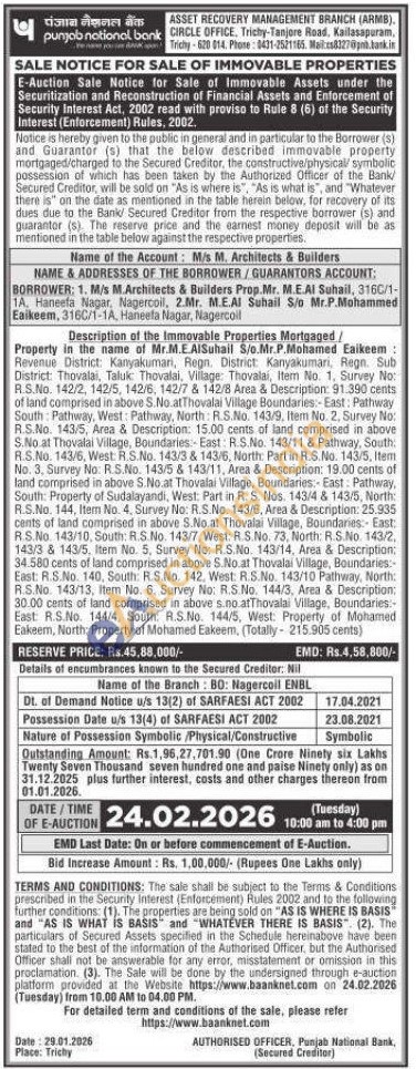 Description of the Immovable Properties Mortgaged/Property in the name of Mr.M.E.AlSuhail S/o.Mr.P.Mohamed Eaikeem: Revenue District: Kanyakumari, Regn. District: Kanyakumari, Regn. Sub District: Thovalai, Taluk: Thovalai, Village: Thovalai, Item No. 1, Survey No: R.S.No. 142/2, 142/5, 142/6, 142/7 & 142/8 Area & Description: 91.390 cents. of land comprised in above S.No at Thovalai Village Boundaries: East: Pathway South Pathway, West: Pathway, North: R.S.No. 143/9, Item No. 2. Survey No: R.S.No. 143/5, Area & Description: 15.00 cents of land comprised in above S.No at Thovalai Village, Boundaries East: R.S.No. 143/11 & Pathway, South R.S.No. 143/6, West: R.S.No. 143/3 & 143/6, North Part in R.S.No. 143/5, Item No. 3, Survey No: R.S.No. 143/5 & 143/11, Area & Description: 19.00 cents of land comprised in above S.No.at Thovalai Village, Boundaries: East Pathway, South: Property of Sudalayandi, West: Part in R. S. Nos. 143/4 & 143/5, North: R.S.No. 144, Item No. 4, Survey No: R.S.No. 143/6, Area & Description: 25.935 cents of land comprised in above S.No at Thovalai Village, Boundaries: East: R.S.No. 143/10, South: R.S.No. 143/7, West: R.S.No. 73, North: R.S.No. 143/2, 143/3 & 143/5, Item No. 5, Survey No: R.S.No. 143/14, Area & Description: 34.580 cents of land comprised in above S.No at Thovalai Village, Boundaries: East: R.S.No. 140, South: R.S.No. 142, West: R.S.No. 143/10 Pathway, North: R.S.No. 143/13, Itern No. 6, Survey No: R.S.No. 144/3, Area & Description: 30.00 cents of land comprised in above s.no at Thovalai Village, Boundaries:-East R.S.No. 144/4, South: R.S.No. 144/5, West: Property of Mohamed Eakeem, North: Property of Mohamed Eakeem, (Totally- 215.905 cents)