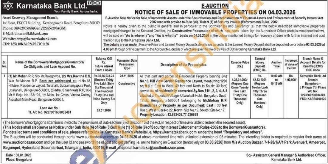 All that part and parcel of Residential Property bearing Site No. 18, Hill View Garden Residence Layout, measuring 1200 sq ft (ie. East to West: 40 feet and North to South: 30 feet) carved out of residentially converted Sy. Nos 51/1, 2, 3, 4, & 5 situated at Thurahalli Village, Uttarahalli Hobli, Bengaluru South Taluk, Bengaluru-560061 belonging to Mr.Mohan R.P. Boundaries of Property as per Document: East: 30 feet Road, West: Site No.22, North: Site No. 19, South: Site No. 17. Property Location:12.893408,77.536868