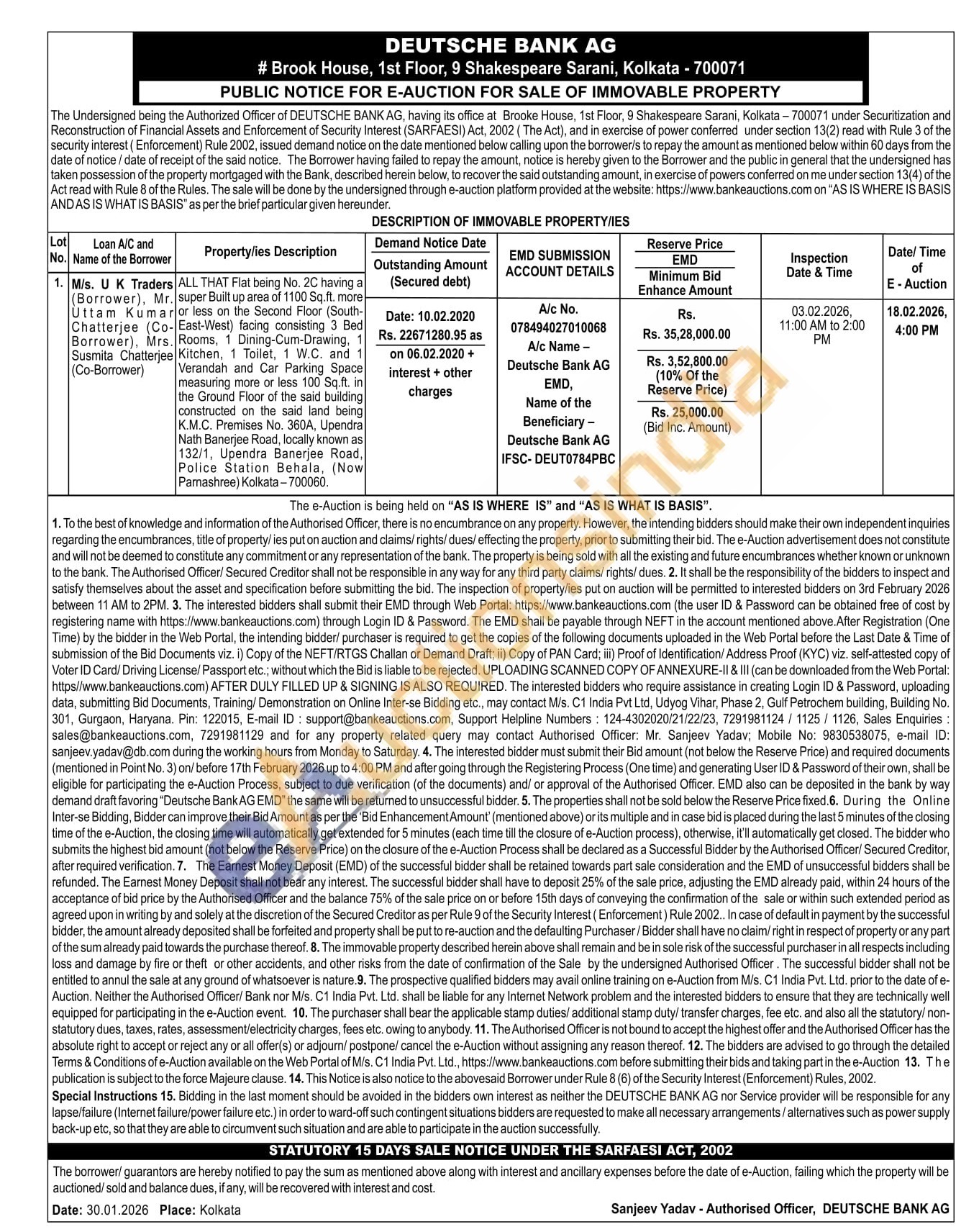 Mr. Sanjeev Yadav, Mobile No: 9830538075