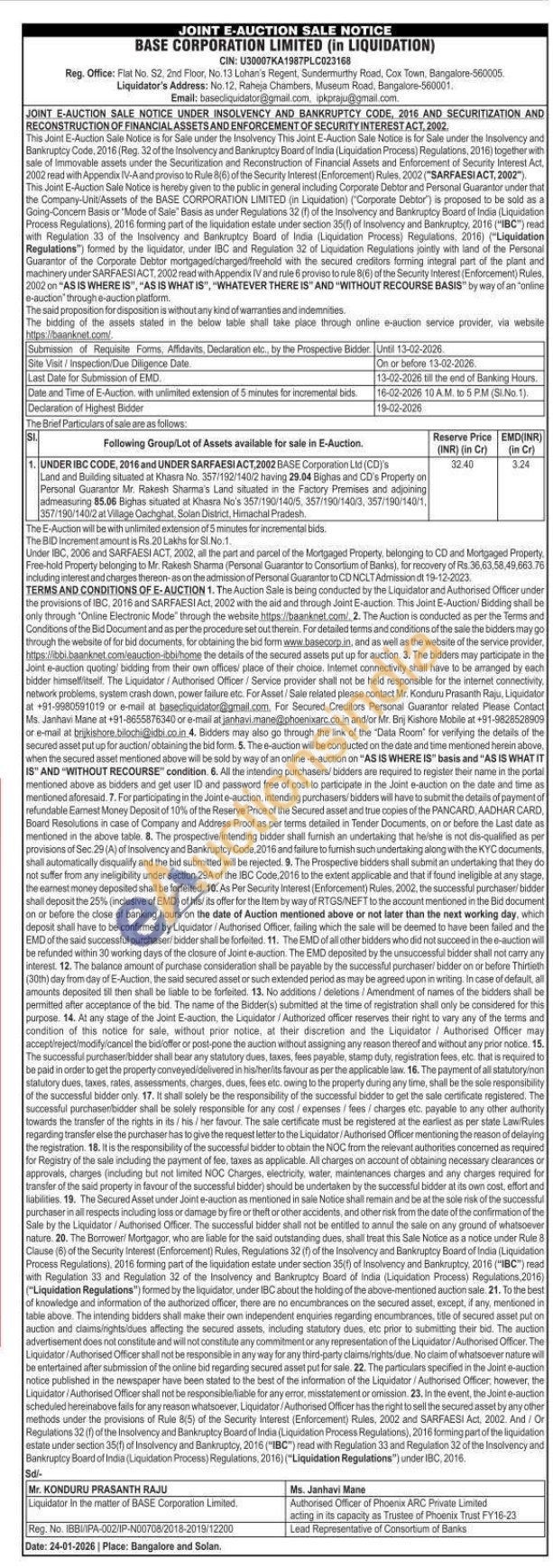 Land and Building situated at Khasra No. 357/192/140/2 having 29.04 Bighas and CD's Property on Personal Guarantor Mr. Rakesh Sharma's Land situated in the Factory Premises and adjoining admeasuring 85.06 Bighas situated at Khasra No's 357/190/140/5, 357/190/140/3, 357/190/140/1, 357/190/140/2 at Village Oachghat. Solan District, Himachal Pradesh.
