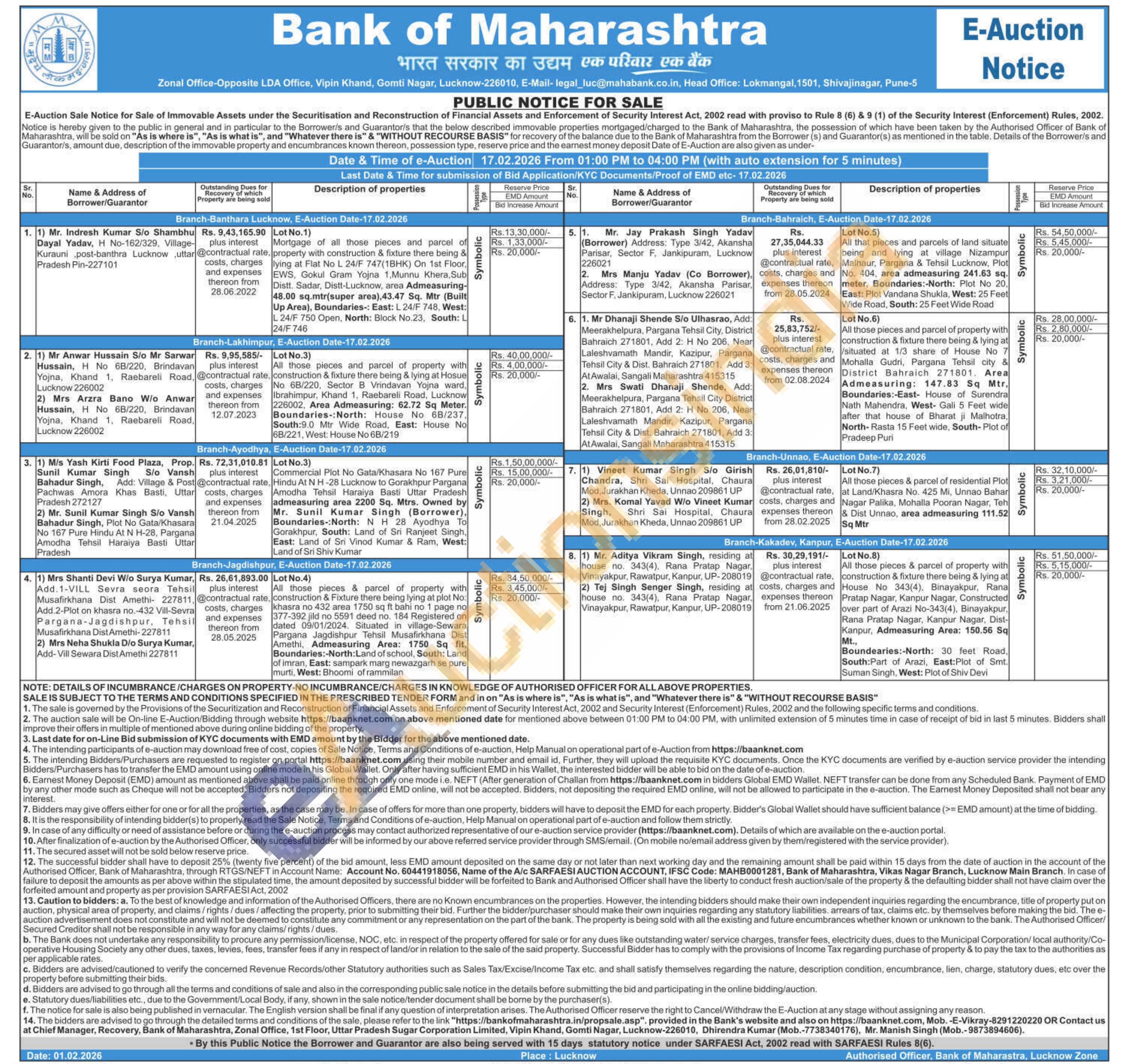 Lot No.1) Mortgage of all those pieces and parcel of property with construction & fixture there being & lying at Flat No L 24/F 747(1BHK) On 1st Floor, EWS, Gokul Gram Yojna 1, Munnu Khera, Sub Distt. Sadar, Distt-Lucknow, area Admeasuring-48.00 sq.mtr(super area), 43.47 Sq. Mtr (Built Up Area), Boundaries-: East: L 24/F 748, West: L 24/F 750 Open, North: Block No.23, South: L 24/F 746