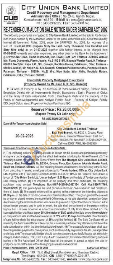11.74 Ares of Property in Sy. No. 138/2/2/2 of Pulhernivelikkara Village, Paravur Taluk Emakulam District with all improvements therein. Boundaries: East Property of Cletus and the family of Kazhuveliparambil, North Panchayath Vazhi and the Property of the Family of Kazhuvelipparambil and Kodiyan Family, South Property of Kodiyan Family, ISO, Joy & Cletus, West: Property of Kodiyan Family and ISO