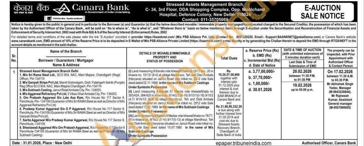 (1) Land measuring 8 Kanals vide khewat/khata no 18/13 min. 20 in khasra no. 10/12/ (5-0) at village Mandthour, Teh and Distt Ambala (Haryana) situated don on Jarout Road vide intkal no. 2912 vide Sale deed dated 02.11.1988 in the name of Mis Subhash Castings Under Symbolic Possession (i) Land measuring 4 Kanals 07 Martas vide khewatkhata no 383/424, 384/425 in khaara no. 9/14/2/2 (0-18) 9/15/1(0-18)9/15/2 (4-7) 9/14/1/2 (6-4) at village Mandhour. Teh and Dist Ambala (Haryana) situated on Jarout Road vide intial no. 2912 vide Sale deed dated 17.02.1989 in the name of Mis Subhash Castings Under Symbolic Possession (iii) Land measuring 9 Kanals 8 Marlas vide khewati khata no 76/770 86 in khasra no. 9/16/2 (3-14) 9/17(5-13) at village Mandhour, Teh and Disit Ambala (Haryana) situated on Jarout Road vide intkal no. 2912 vide Sale deed dated 15.07.1980 in the name of Mis Subhash Castings
