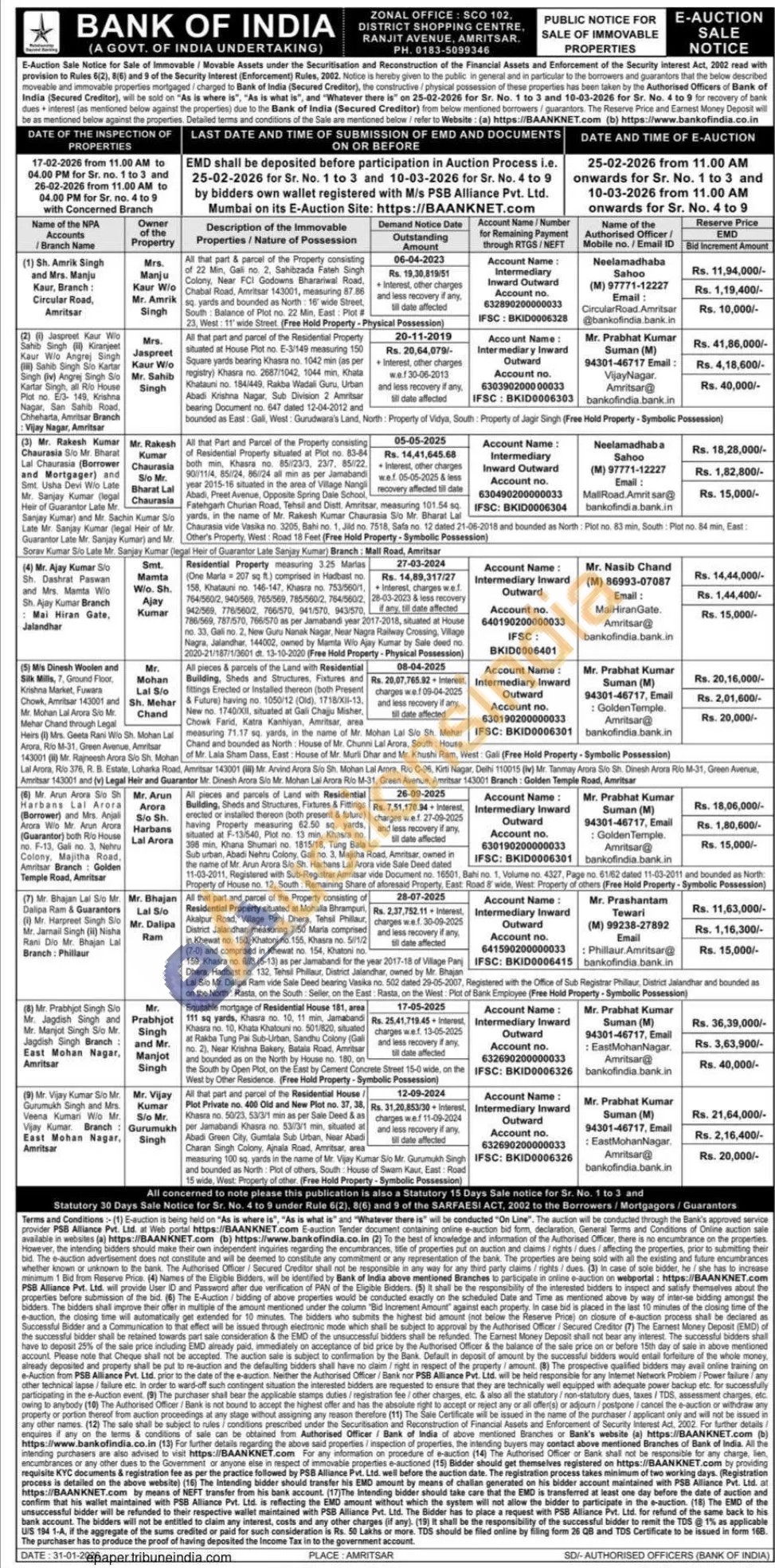 All pieces and parcels of Land with Residential Building, Sheds and Structures, Fixtures & Fittings erected or installed thereon (both present & future) having Property measuring 62.50 sq. yards, situated at F-13/540, Plot no. 13 min, Khasra no. 398 min, Khana Shumari no. 1815/16, Tung Bala Sub urban, Abadi Nehru Colony, Gali no. 3. Majitha Road, Amritsar, owned in the name of Mr. Arun Arora Sio Sh. Harbans Lal Arora vide Sale Deed dated 11-03-2011, Registered with Sub-Registrar Amritsar vide Document no. 16501, Bahi no. 1, Volume no. 4327, Page no. 61/62 dated 11-03-2011 and bounded as North: Property of House no. 12, South: Remaining Share of aforesaid Property, East. Road 8 wide, West: Property of others (Free Hold Property-Symbolic Possession)