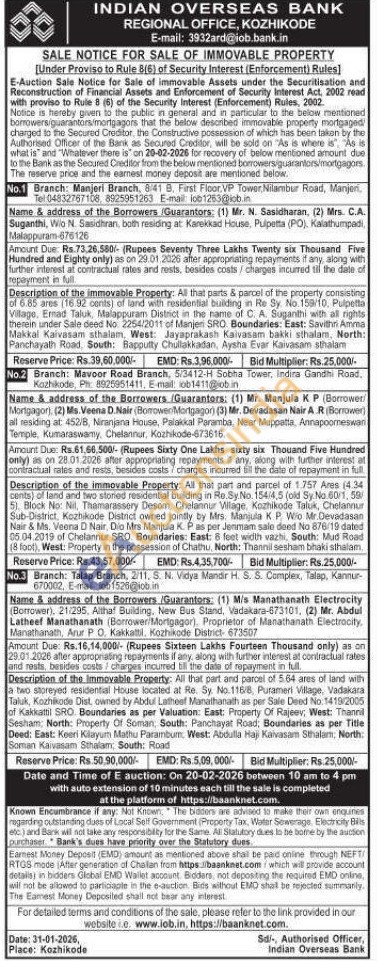 Description of the immovable Property: All that part and parcel of 1.757 Ares (4.34 cents) of land and two storied residential building in Re.Sy No. 154/4,5 (old Sy No.60/1,59/5). Block No: Nil, Thamarassery Desom, Chelannur Village. Nage, Kozhikode Taluk, Chelanur Sub-District, Kozhikode District owned jointly by Mrs. Manjula KP W/o Mr.Devadasan Nair & Ms. Veeria D Nair. D/o Mrs Manjula K. Pas per Jerimam sale deed No 876/19 dated 05.04.2019 of Chelannur SRO Boundaries: East: 8 feet width vazhi, South: Mud Road (8 foot), West: Property in the possession of Chathu, North: Thannil sesham bhaki sthalam
