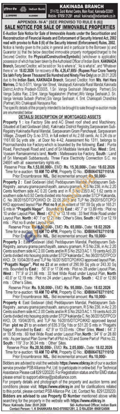 DETAILS/DESCRIPTION OF MORTGAGED ASSETS : Property 3: East Godavari (dist) Peddapuram Mandal, Peddapuram Sub-Ragistry, aanuru grama panchayath, aanuru gramam, RS No 236, Ac 2.20 Cents southem side AC 2.00 Cents and in RS No 252/3AC 1.19 cents Ac0.20 Cents divided into hosuing plots under STCP kakianda C. No 36/2015/DTPCO KKD, Dt: 10/04/2015 and TLP No 16/2015 DTCPOIKKO approved layout Plin. "Pragathi Nagar", Plot no 23 at an extent of 290.99 Sq yds or 243.30 5 mts. Bounded by East: 56 or 17.06 mts: Plot no 28 under Layout Plan, West: 719 or 21.96 mts: 33 feet Wide Road under Layout Plan, North 40.0 or 12.19 més Plot no 24 under Layout Plan, South: 42.0 or 1280 mis: Other's Sites