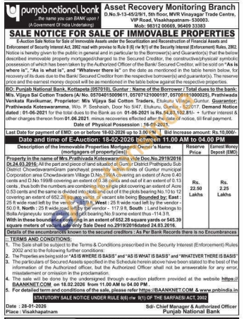 Property in the name of Mrs. Prathvivada Koteswaramma vide Doc. No. 29182016 DL24.03.2016: All the part and piece of land situated at Guntur District Prathipadu Sub District Chowdavaram Gram panchayat presently within limits of Guntur municipal Corporation area Chowdavanam Village D.No. 1984. covering an extent of Acre 0.40 cer and D.No Tina covering an extend of 0.38 cants and oul of it an extent of 0.13 cants. Thus both the numbers are combining into stigle plot covering an extent of Acne 0.53 cents and the same is divided into plots and out of is the plots bearing No. 10 to 12 covering an extent of 652.26 square yards of vacant site being Bounded by: East: 25 ft wide nad left by the vendor-513f6, West: 25 ft wide road left by the vendor-50.0, North: 25 ft wide road left by the vendor-11798, South Land belongs to Buka Anjaneyulu some exdere and plot bearing No some extent thus-114.3ft