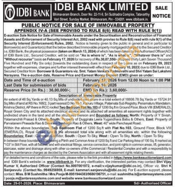 Shri Vijay Kumar V. Authorized Officer (Contact No : 0007001972) / Officer viz. Shri K Sanjeevulu (Contact No : 9049256959)