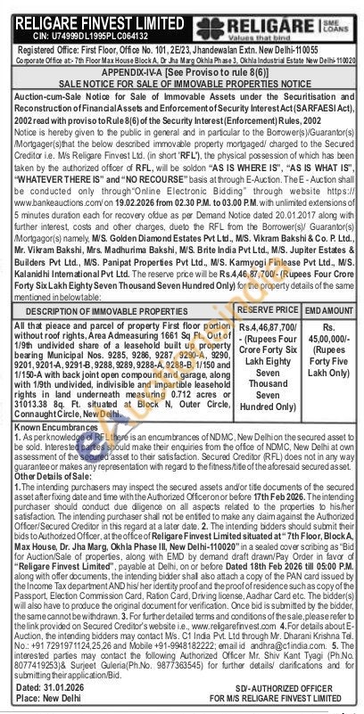 All that pieace and parcel of property First floor portion without roof rights, Area Admeasuring 1661 Sq Ft. Out of 1/9th undivided share of a leasehold built up property bearing Municipal Nos. 9285, 9286, 9287, 9290-A, 9290, 9201, 9201-A, 9291-8, 9288, 9289, 9288-A, 9288-B, 1/150 and 1/150-A with back joint open compound and garage, along with 1/9th undivided, indivisible and impartible leasehold rights in land underneath measuring 0.712 acres or 31013.38 8q. Ft. situated at Block N, Outer Circle, Connaught Circle, New Delhi
