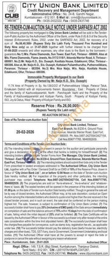 11.74 Ares of Property in Sy. No. 138/2/2/2 of Puthenvelikkara Village, Paravur Taluk Ernakulam District with all improvements therein. Boundaries: East Property of Cletus and the family of Kazhuveliparambil, North Panchayath Vazhi and the Property of the Family of Kazhuvelipparambil and Kodiyan Family, South Property of Kodiyan Family, ISO, Joy & Cletus, West: Property of Kodiyan Family and ISO.