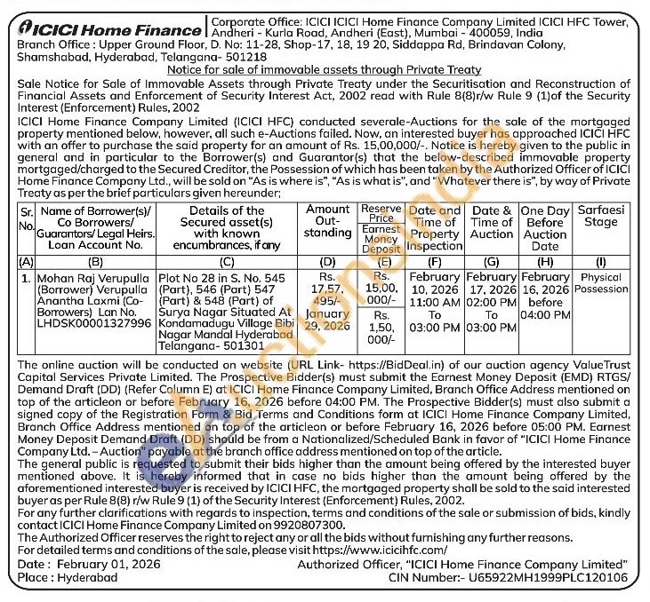 Plot No 28 in S. No. 545 (Part), 546 (Part) 547 (Part) & 548 (Part) of Surya Nagar Situated At Kondamadugu Village Bibi Nagar Mandal Hyderabad Telangana-501301