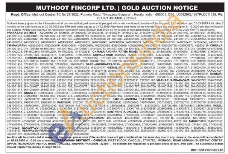 Muthoot Fincorp Ltd Gold Auctions Auction in Thiruvananthapuram