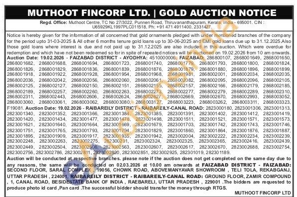 Muthoot Fincorp Ltd Gold Auctions Auction in Thiruvananthapuram