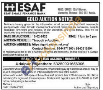 ESAF SMALL FINANCE BANK Gold Auctions Auction in Thrissur