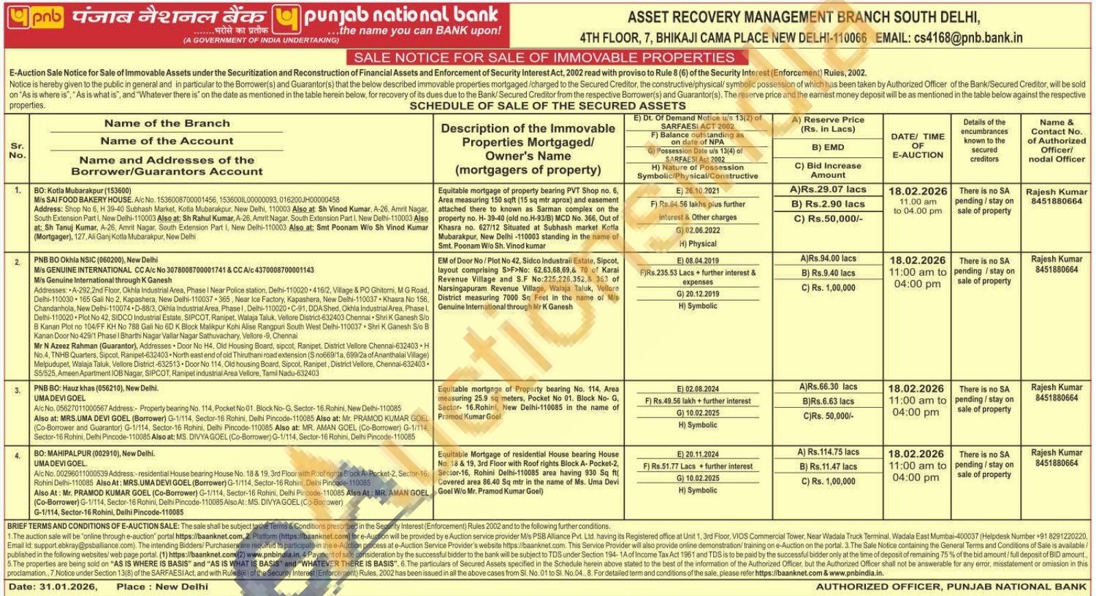 Branch Name : ASSET RECOVERY MANAGEMENT BRANCH SOUTH DELHI