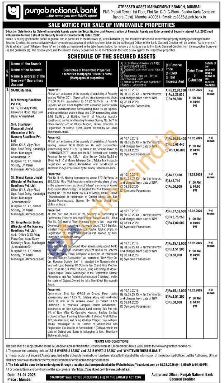 Property 3: Plot No B-47, Having Admeasuring about 670 Sq. Yards ie 560.12 Sq. Mtrs (Plot Area) along with undivided share of land in the scheme known as "Anmol Village" a scheme of Anmol Association (Maninanagr) in situated the N.A freehold land bearing No. 139 and Block No.174 at Mouje: Raska, Taluka -Mahemdabad, in registration of District Kheda and Sub District-Mahemdabad. Owned By Mr.Anup Jindal and Mr. Manoj Jindal.