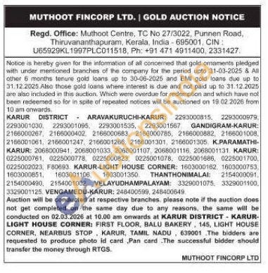Muthoot Fincorp Ltd Gold Auctions Auction in Karur
