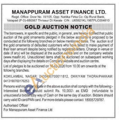 Manappuram Asset Finance Ltd Gold Auctions Auction in Thrissur